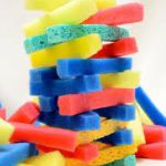 Create your own homemade building set from simple sponges and a pair of scissors. If you are like me, you are oftentimes looking for great activities that are mess free and travel well. I am usually toting around